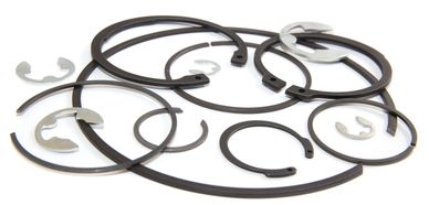 Circlips are retaining rings containing a semi-flexible metal ring with open ends which can be snapped into place, in a machined groove on a dowel pin or other part to allow rotation but to stop lateral movement. Circlips are also called as C-clip, Seeger ring or a snap ring. Standard material for circlips is carbon spring steel with phosphate and oil finish.